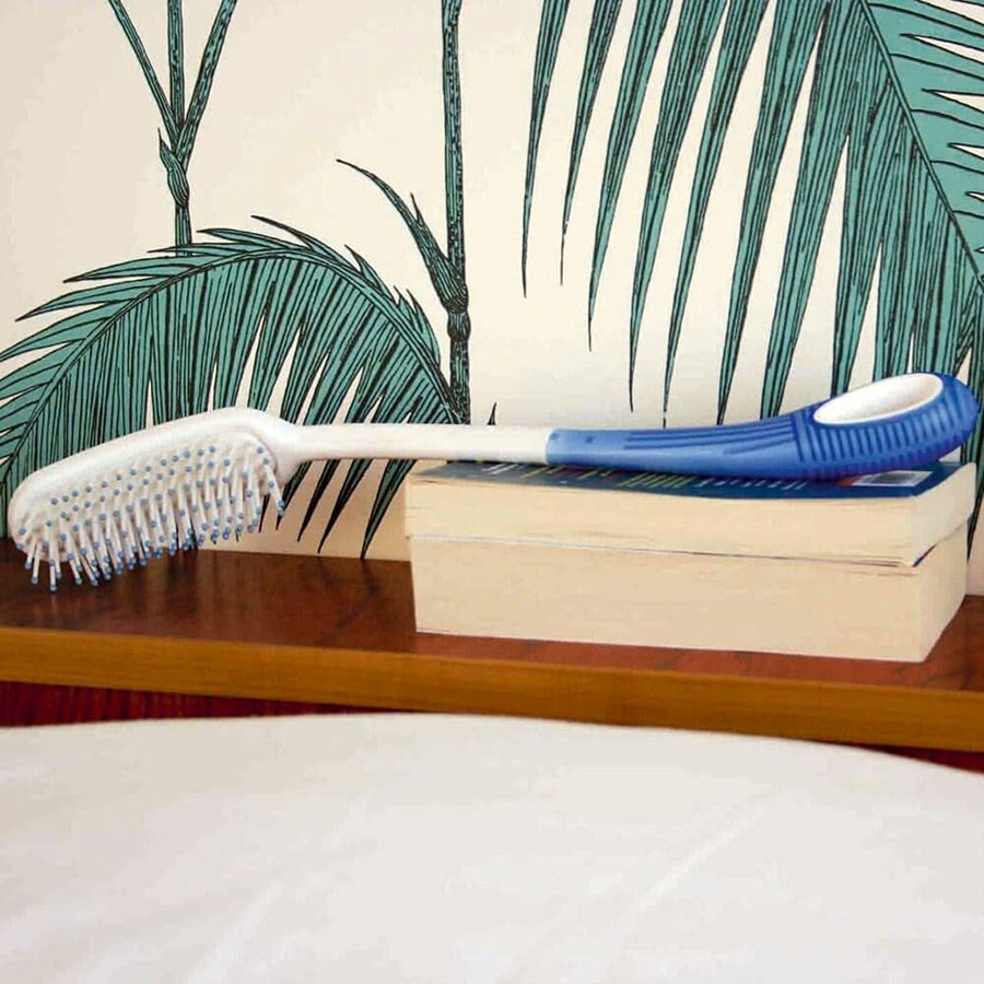 This specialty hairbrush from the Etac Beauty range is ergonomically designed to minimise strain on the neck, shoulders and arms when brushing hair. Available in two lengths, the lightweight brush is curved to follow the shape of the head. This allows the handle to be held close to the body for maximum comfort and control.