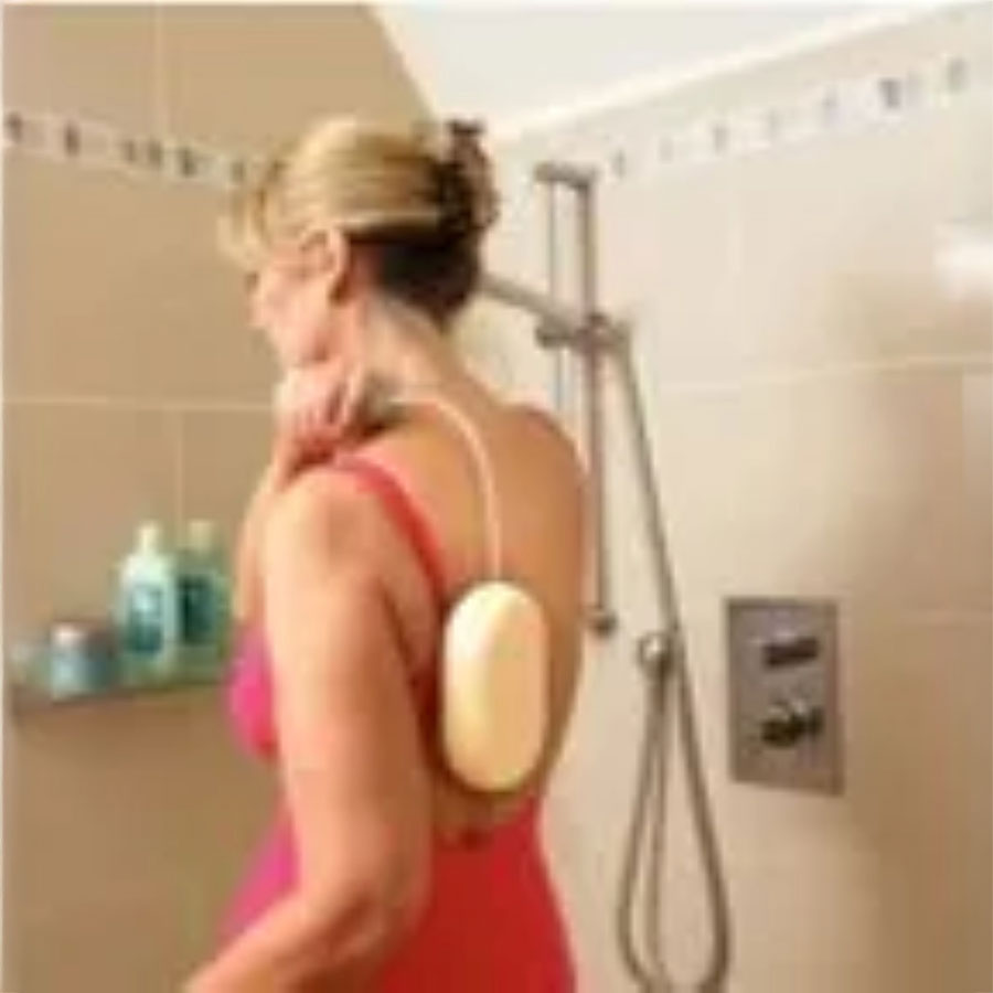 Long-handled oval foam sponge used to help reach legs, feet and back for independent bathing. Ideal for those with limited reach. Plastic-coated, flexible wire. Grey plastic built-up handle.