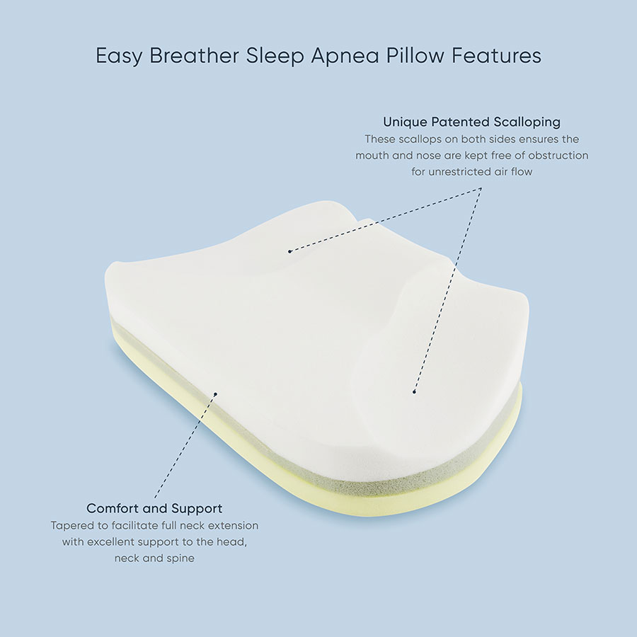 Luxurious comfortable memoryfoam pillow purpose-designed to encourage easier breathing & compatible with CPAP masks. Unimpeded breathing environment for increased air flow. Snugly accommodates either nasal or full-face CPAP masks. 100% Premium Foam Made in Australia. Designed by the Best. Sleep Safely & in Good Health.