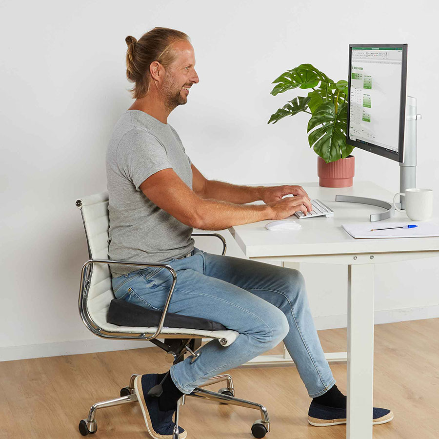 This therapeutic cushion encourages a correct pelvic tilt of 9 degrees, significantly reducing pressure on lumbar discs and fostering a healthier spine alignment. The size suits most individuals and standard seats. From office chairs, dining chairs or when travelling, this posture support is easy to take wherever you need.