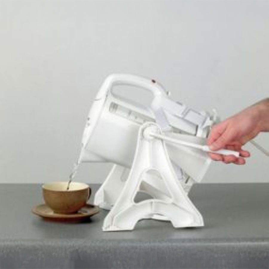 The Universal Kettle Tipper features a classic design compatible with most kettle types, including standard, jug and cordless. The lever can be positioned on either side to tip the kettle without having to lift it. For added safety, the kettle rocks back into an upright position when released. The base plate has a front sliding stop so the user can position the kettle where it is needed. It is then secured with two sturdy straps.