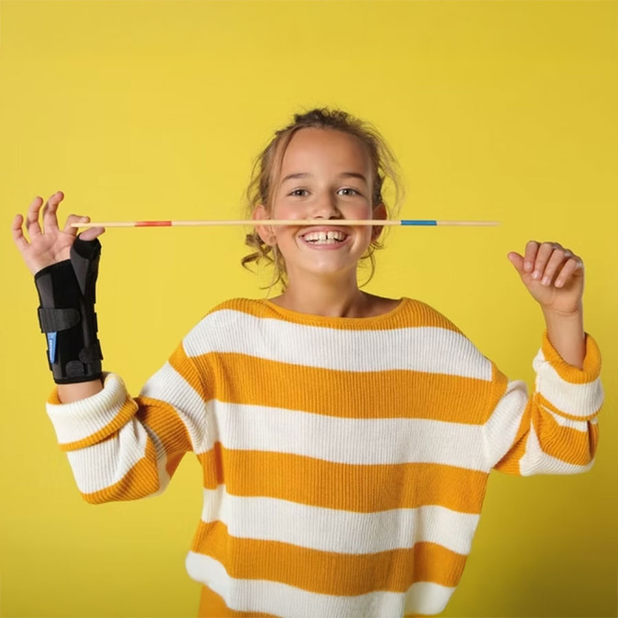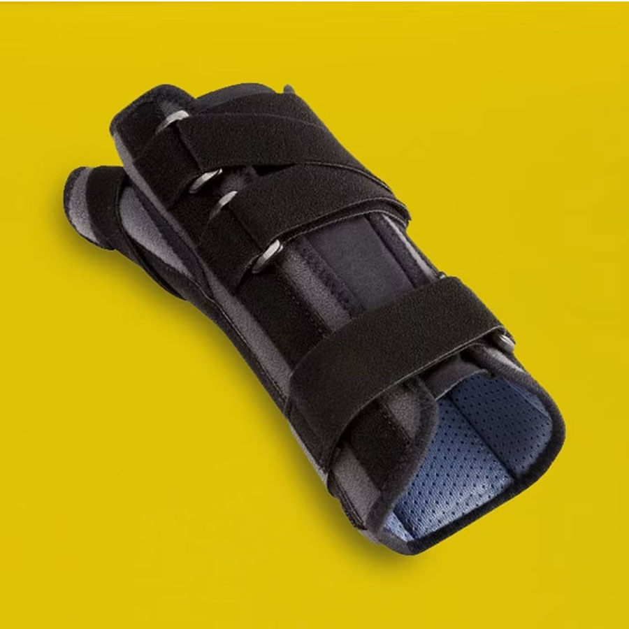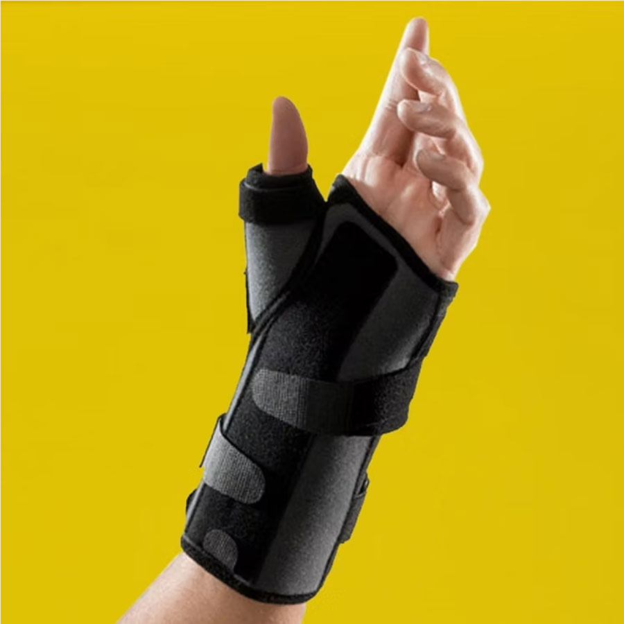 Provides support and may help recovery from moderate thumb sprain, wrist sprain, De Quervain’s tenosynovitis, Colles fracture. Suitable in supporting post-operative immobilisation and rehabilitation. Wire frame to immobilise the thumb in an analgesic position. Stay is located in the web area, and the thumb column area is open to prevent pressure on the painful zone. Ultralight, comfortable and very short to maintain the wrist’s range of motion. Breathable, antibacterial 3D knit fabric.