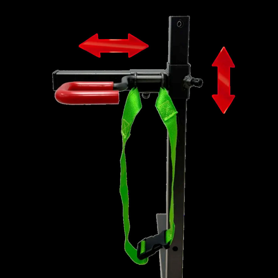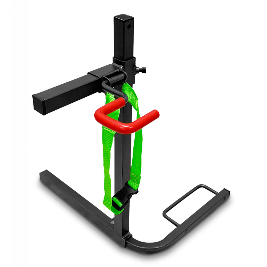 – Wheel cradle, padded retention hook and strap securely hold walker in place